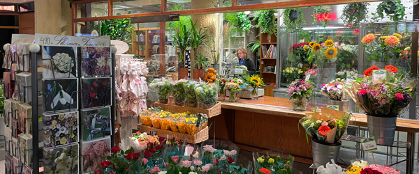 Palveleva kukkakauppa Helsingin rautatieasemalla